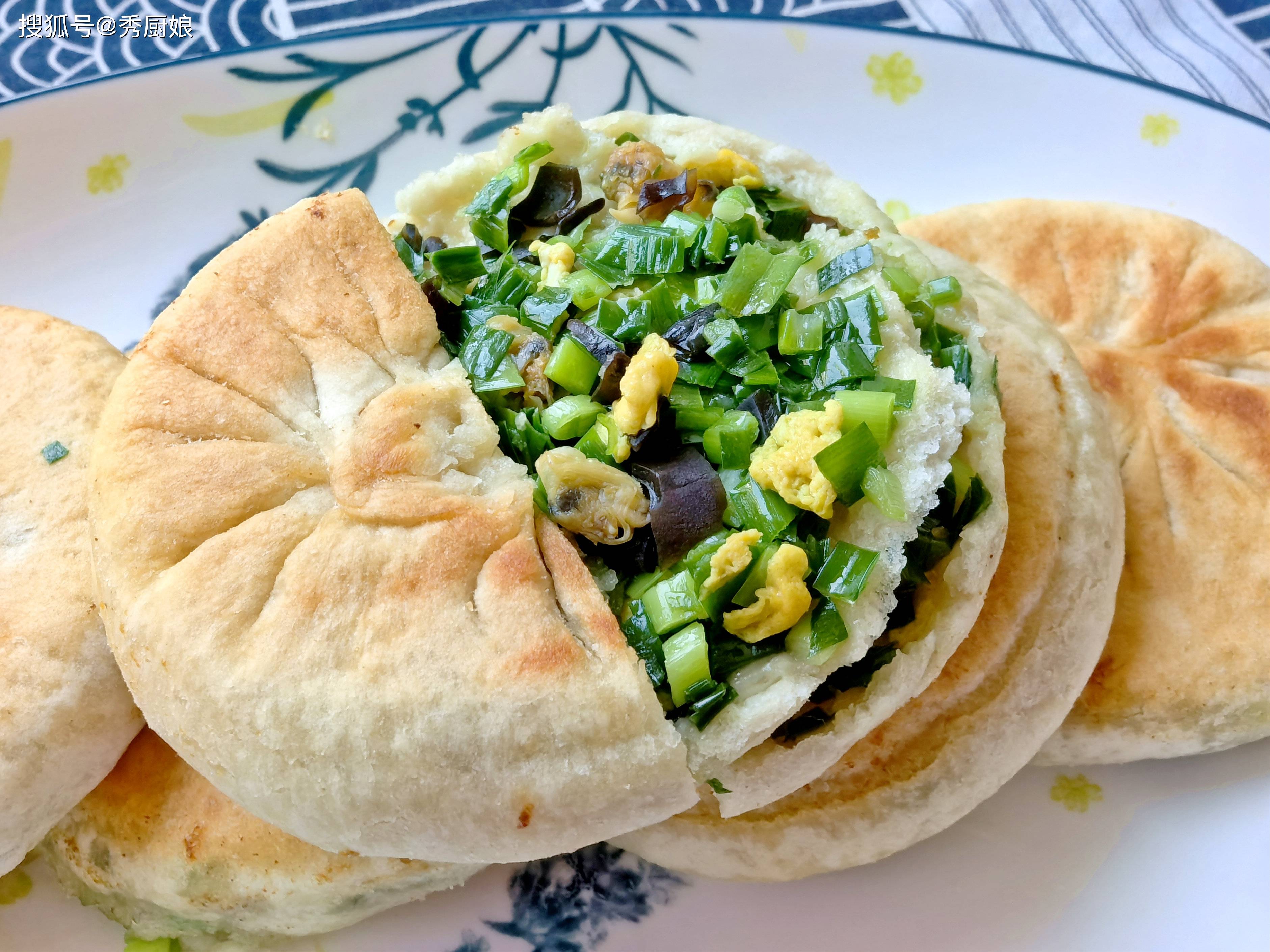 3. 面团擀成面皮,包入馅料煎至两面金黄即可。