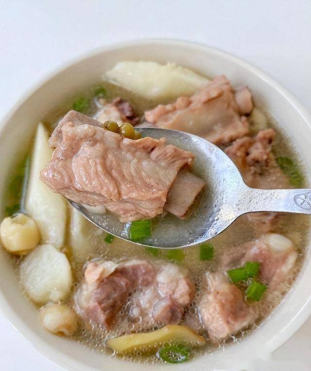 4. 炖排骨汤:将焯过水的排骨放入炖锅中,加入足够的清水。用大火将汤煮沸,撇去浮沫后,改成小火慢炖40分钟。
